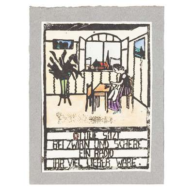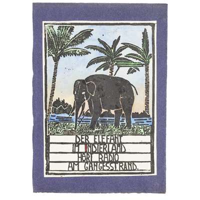 contained within a portfolio, entitled 'Das Lustige ABC im Zeichen des Radio: Reime und bilder entworfen u. geschnitten von der 3. klasse d. madchen-Bürgerschule/ Wein, 13., Muthsamg. 1'