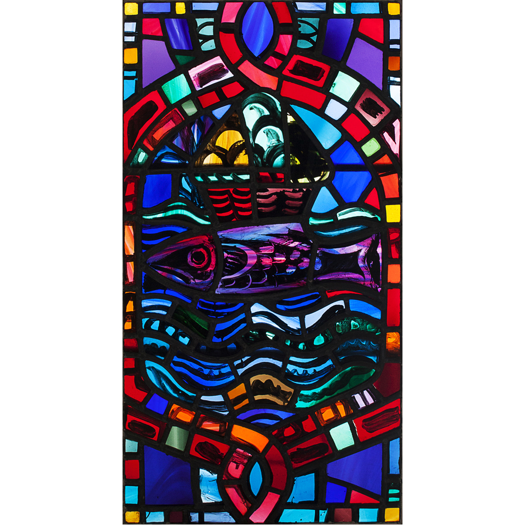 STAINED AND LEADED GLASS PANEL, CIRCA 1954