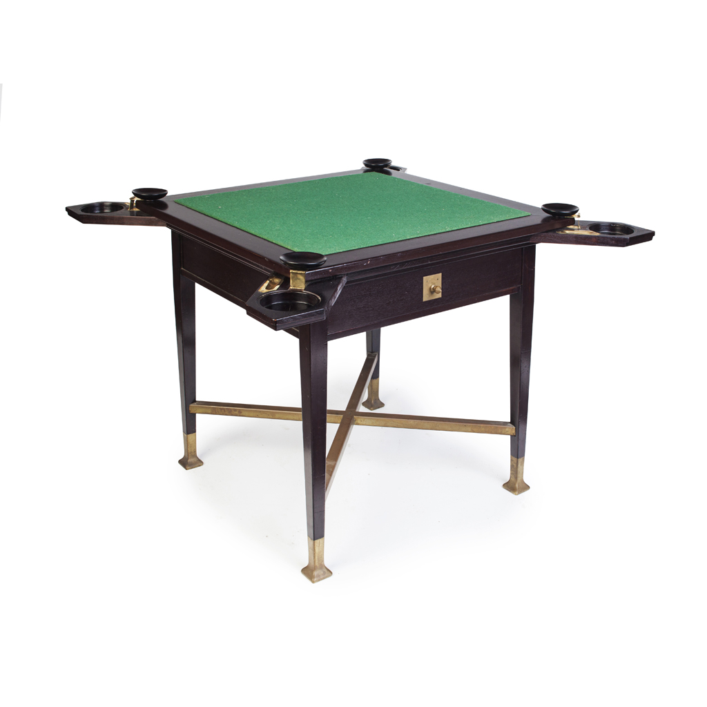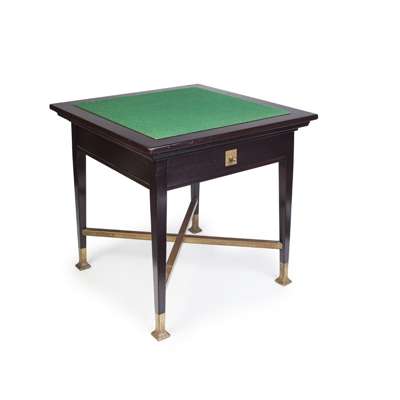 MAHOGANY AND BRASS CARD TABLE, CIRCA 1900