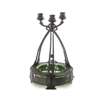 cast as three uprights meeting in the middle and terminating in sconces, raised on an embossed base with a green glass liner