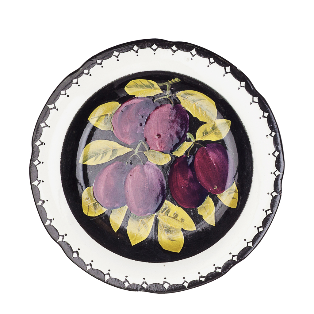 'PURPLE PLUMS' GORDON DESSERT PLATE, EARLY 20TH CENTURY
