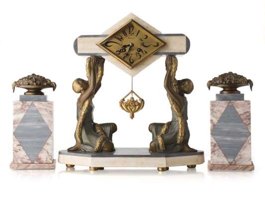 FRENCH ART DECO CLOCK GARNITURE, 1930S