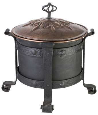 COPPER AND WROUGHT IRON COAL BIN & COVER, CIRCA 1900