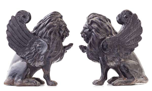 PAIR OF CAST IRON WINGED LIONS, LATE 19TH CENTURY