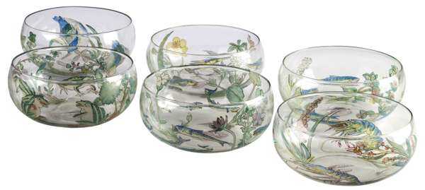 GROUP OF SIX ENAMELLED GLASS FINGER BOWLS, CIRCA 1900
