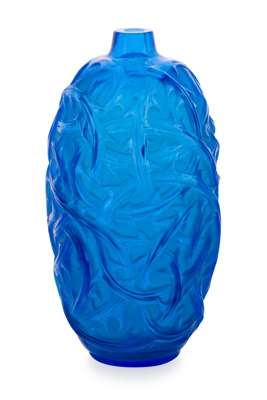 RARE 'RONCES' FROSTED ELECTRIC BLUE GLASS VASE, DESIGNED 1921