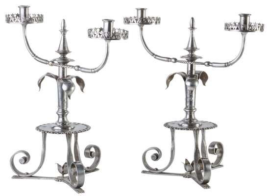 PAIR OF STEEL TABLE CANDELABRA, CIRCA 1900
