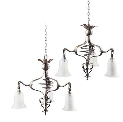 PAIR OF SILVERED ELECTROLIERS, CIRCA 1900