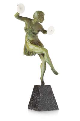 'CYMBAL DANCER', PATINATED SPELTER FIGURE, 1920S