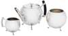 Note: This tea service is one of a group of remarkable designs that the pioneering Victorian designer Christopher Dresser produced for James Dixon & Sons of Sheffield from 1879 -1883. A series of costings books, held in the archives at Sheffield, reveal that Dresser produced approximately 80 designs for Dixon's, not all of which are thought to have gone into production. This was possibly due to comparative expense of manufacture, but also because of the radical nature of his designs. Dresser's interest in and close understanding of the process of manufacture and the use of materials are reflected in these books. They show how much each item produced cost to make in detail, how they were made and, in most cases, which were designed by Dresser. The entries for this tea service in the costings book lay out the costs of manufacture and, in some cases, who was to carry out the work. The cost to manufacture this set was £2/17s/10d, one of the most expensive in the entire range.