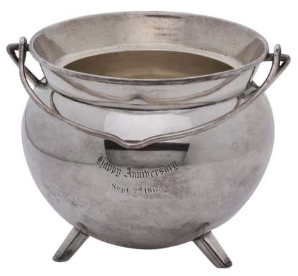 with fixed dividers on a domed base with bun feet stamped marks to base H&H/ 2556, 14cm across; also an ELKINGTON'S ELECTROPLATED CAULDRON SUGAR BOWL, with swing handle and three strut feet, stamped maker's marks 5911, 10.5cm diameter (2)