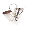 the twin cylindrical dished linked by an arched handle and two pad feet, apparently unmarked
