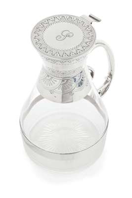 Note: Hukin and Heath first displayed Dresser's designs in their showrooms in August 1879. The designs, along with those for James Dixon in Sheffield are a reflection of the influence of his recent trip to Japan and demonstrate the designers' understanding of the process of manufacture, use of materials and sophistication of line and decoration. The Furniture Gazette of August 23rd 1878 commented "In order that the firm may be recognised by the trade as reliable in point of design in every article of manufacture…and to render themselves secure against the inroads of wedding-cake art, Hukin & Heath have wisely secured the services of one of the past masters of decoration, Dr Christopher Dresser…(who)…has constantly laboured for many years to teach…that in order to be inexpensive - not cheap, that is gimcrack - an article need not be ugly…The great charm about all Dr Dresser's designs is, that they start from a new departure…nothing is taken for granted." The claret jug offered here was amongst those designs, however it is the only known example produced by the firm in silver.