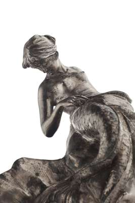 cast as a shell and surmounted by an Art Nouveau mermaid and other sea creatures, stamped WMFB