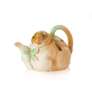 the teapot formed as a rabbit, detailed with green floral sprigs, reserved against a shaded brown ground, printed maker's marks