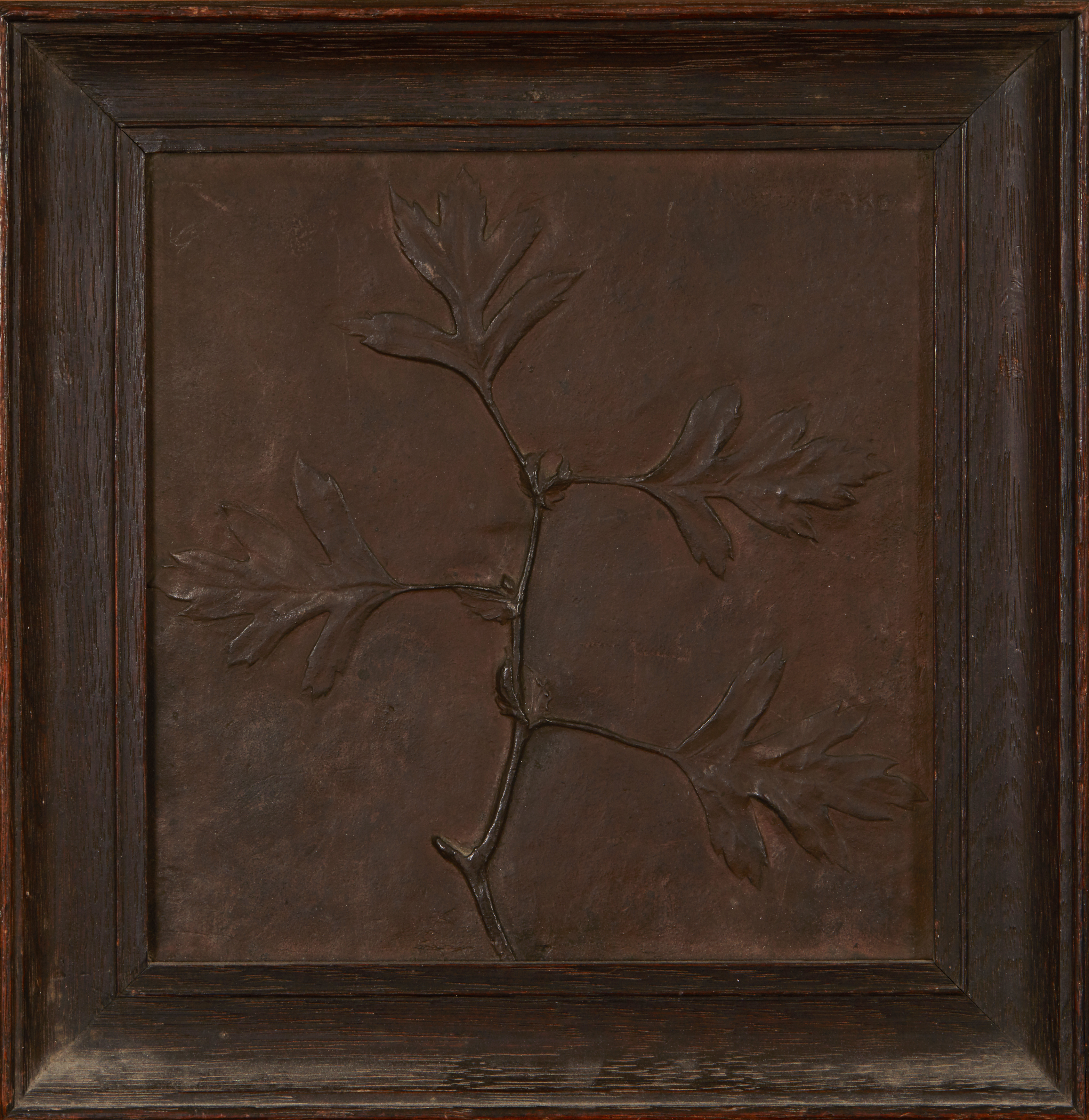 bronze plaque, cast in low relief, signed in the bronze GEO. WEAKE, within an oak frame