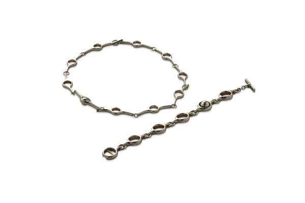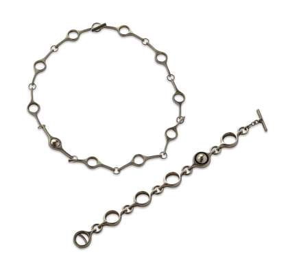 'SPHERE' STERLING NECKLACE AND BRACELET SET, LATE 20TH CENTURY