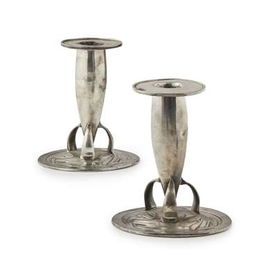 PAIR OF 'TUDRIC' PEWTER CANDLESTICKS, CIRCA 1900