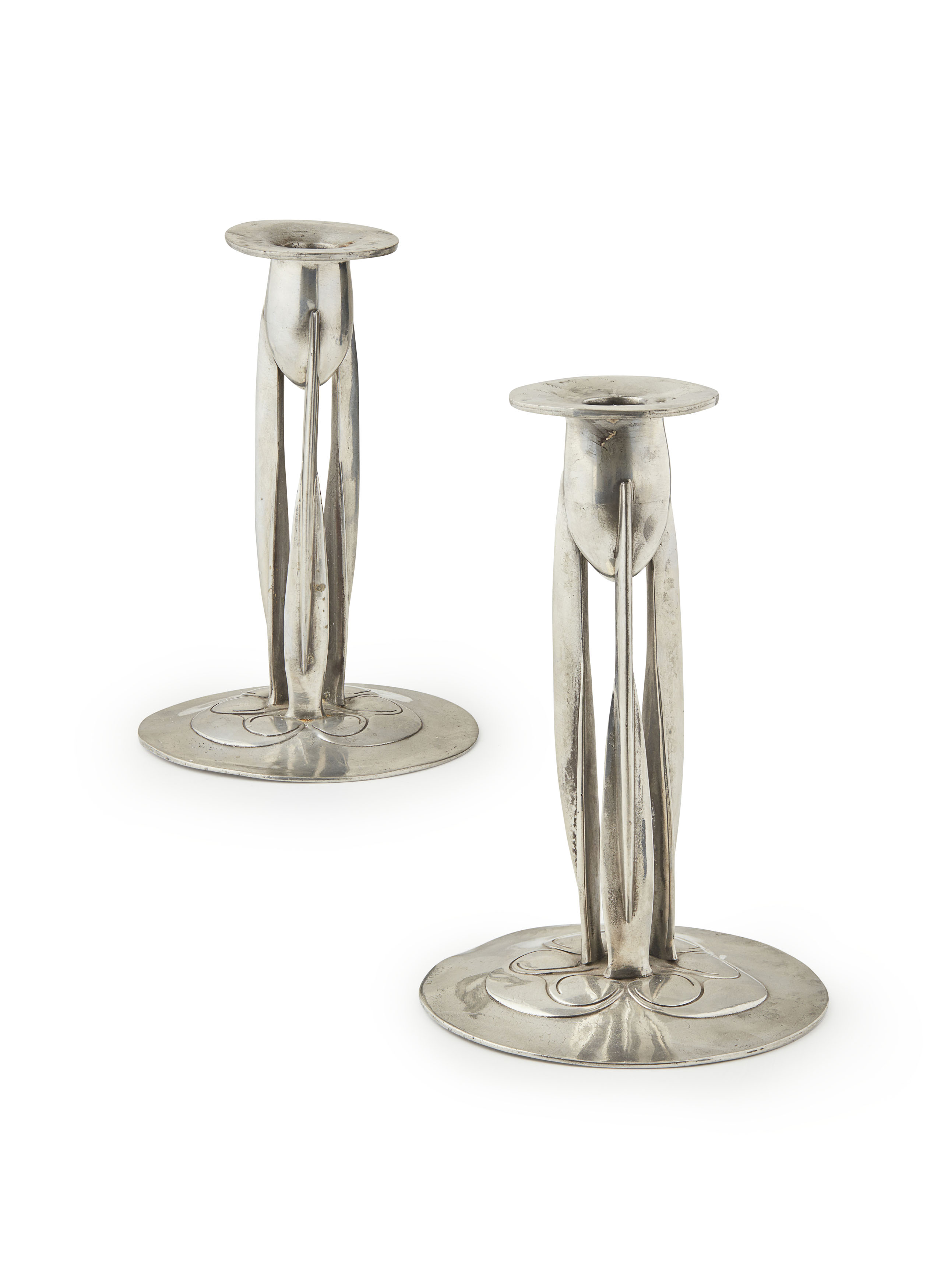 PAIR OF 'TUDRIC' PEWTER CANDLESTICKS, CIRCA 1905