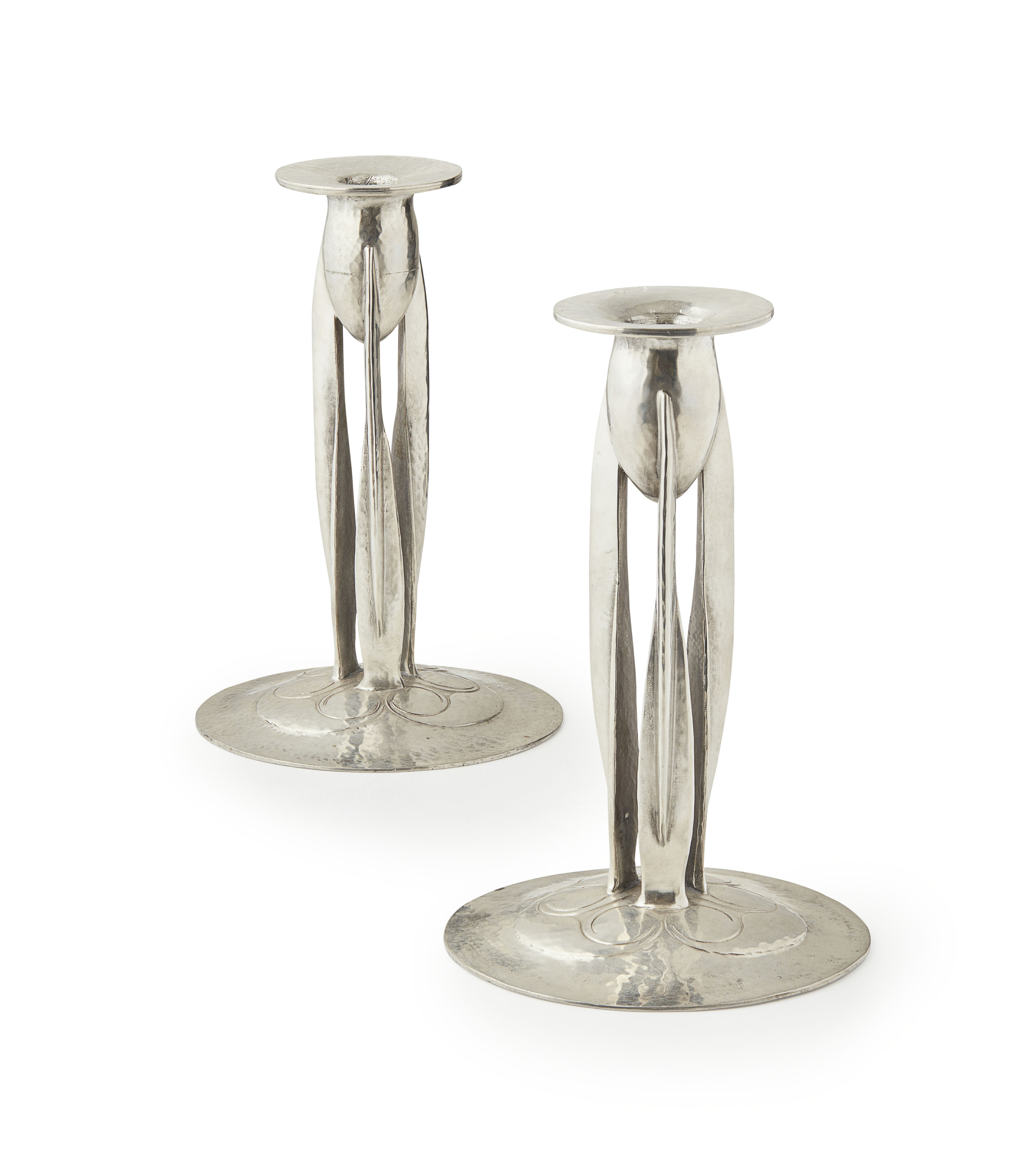 PAIR OF 'TUDRIC' PEWTER CANDLESTICKS, CIRCA 1905