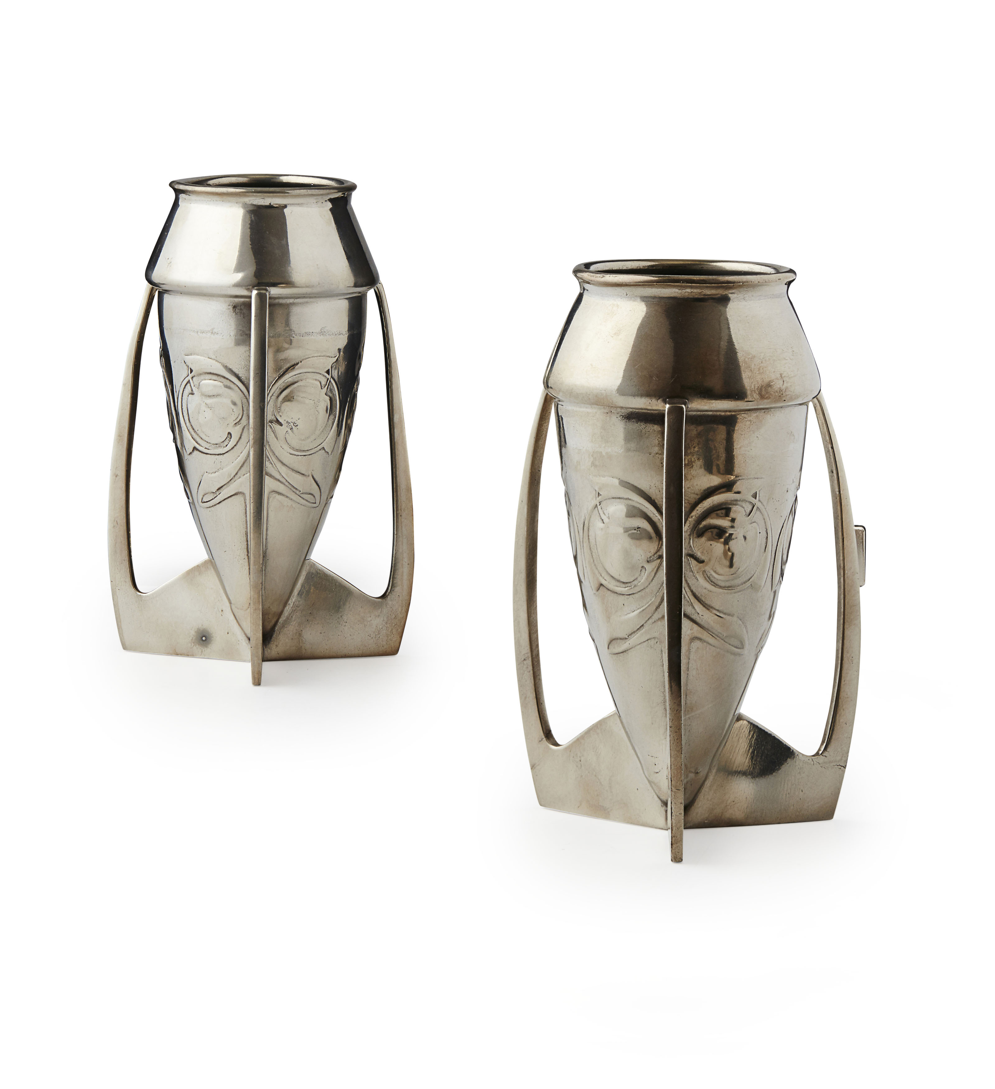 PAIR OF 'TUDRIC' PEWTER BULLET-SHAPED VASES, CIRCA 1905