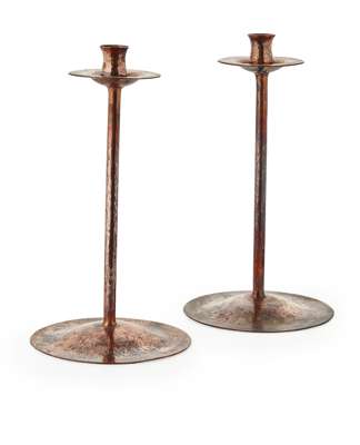PAIR OF COPPER CANDLESTICKS, CIRCA 1905