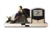 the rectangular dial on a stepped marble and slate case surmounted by the patinated spelter figure