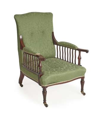 Note: A similar 'Saville' armchair with turned legs can be found in the entrance hall of Standen, Sussex.