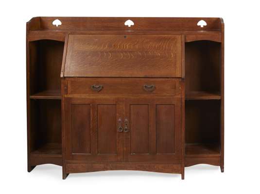 ARTS & CRAFTS OAK BUREAU BOOKCASE, CIRCA 1910