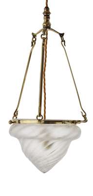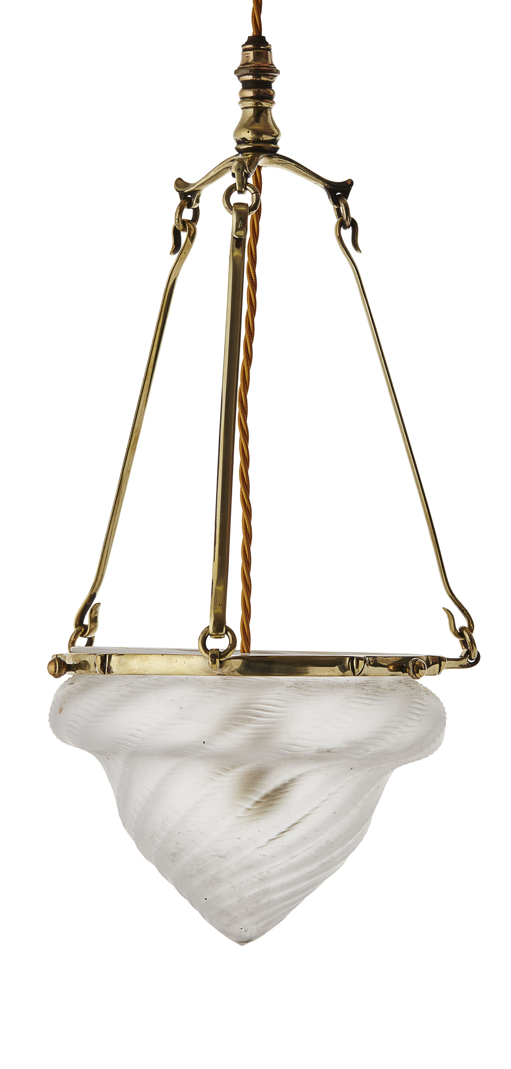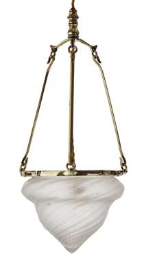 PAIR OF BRASS AND GLASS HANGING LIGHTS, CIRCA 1890