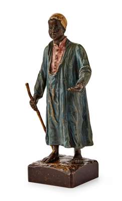 cast as an Arabic man, with walking cane, stamped maker's marks to robe of figure
