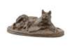BRONZE FIGURE OF A CAT FEEDING ITS KITTENS