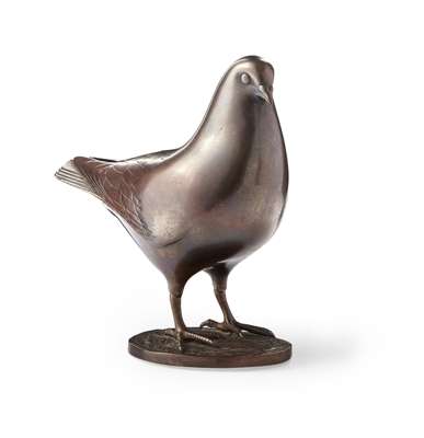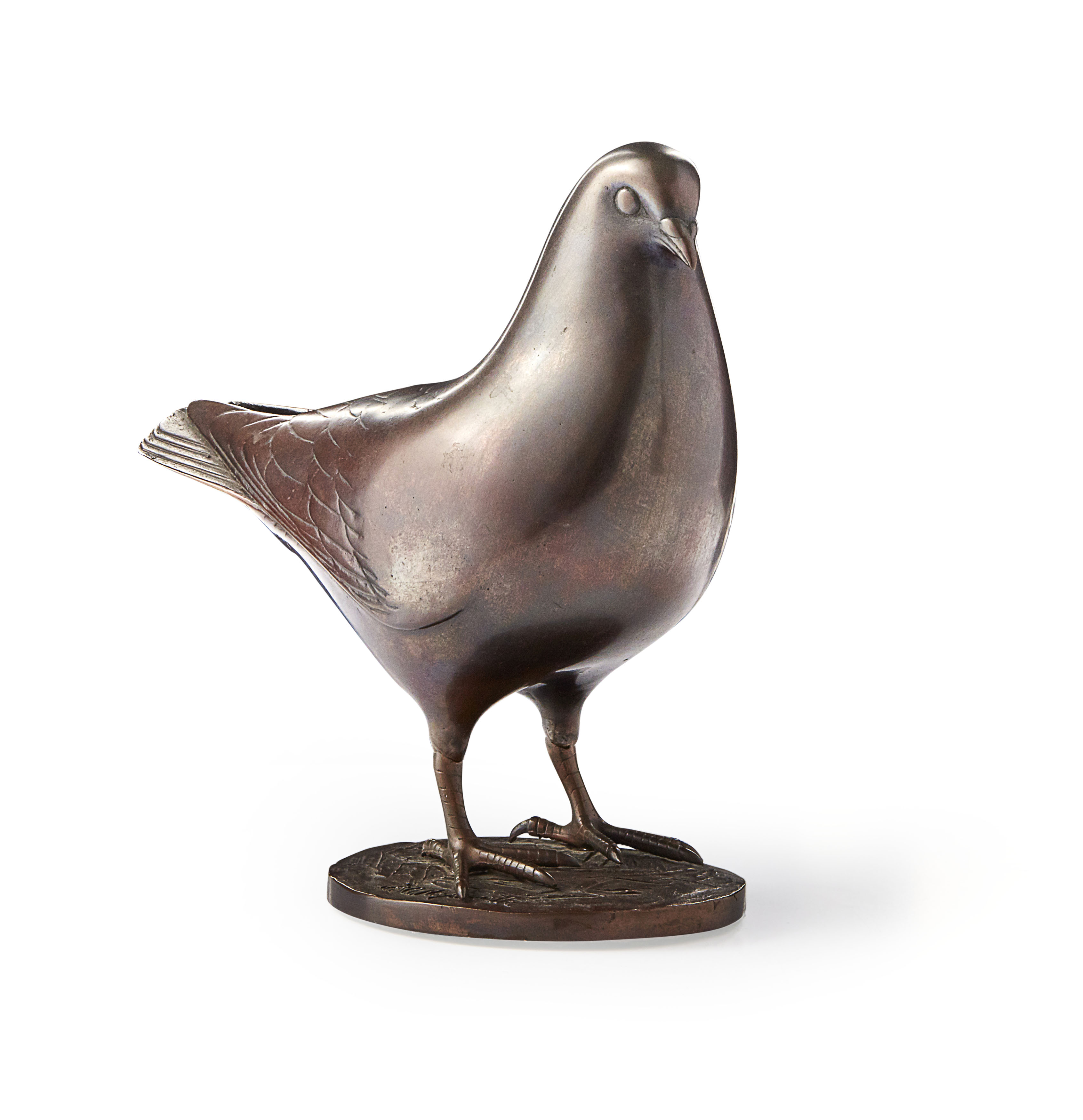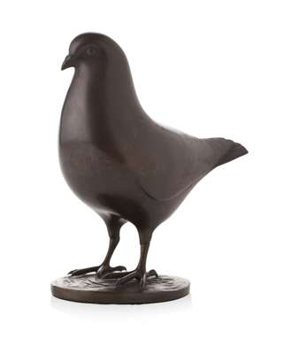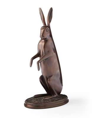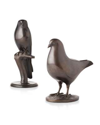KESTREL ON A BRANCH, bronze, unsigned, 22cm high; FIGURE OF A DOVE, bronze, signed in the bronze W.A. HEPWORTH, 17cm high; STANDING HARE, bronze, signed in the bronze W.A. HEPWORTH and dated 1980, 18cm high (3)