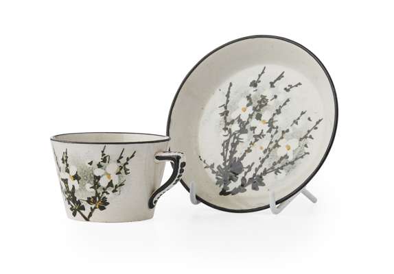 'WHITE BROOM' TEA CUP AND SAUCER, CIRCA 1900