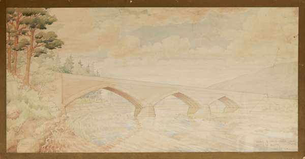 an architectural watercolour inscribed and dated R.I.B.A. 1907, 76cm x 54cm; together with a watercolour depicting a HOUSE AT MILTON ROAD WEST, inscribed F.C.MEARS, 31.5cm x 46cm; two framed watercolour elevations of bridges, FORT AUGUSTUS BRIDGE, INVERNESS-SHIRE, inscribed F.C. MEARS, 1933, 45cm x 60cm and INVERMORISTON BRIDGE, INVERNESS-SHIRE, inscribed F.C. MEARS, 1933, 44.5cm x 60cm; and a watercolour panel of OICH BRIDGE, inscribed MEARS & CARUS WILSON, APRIL 20TH 1930, 35.5cm x 71.5cm (5)