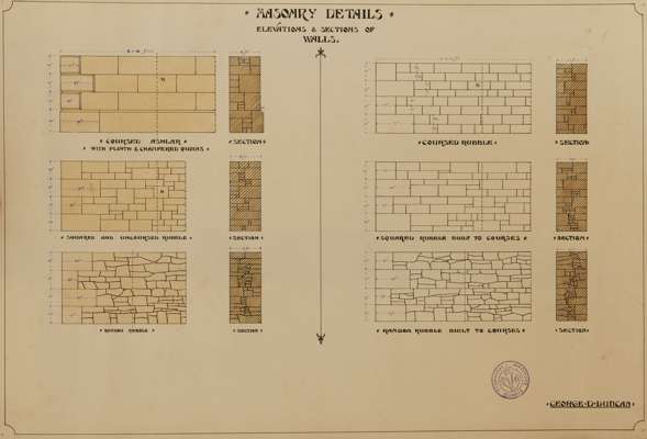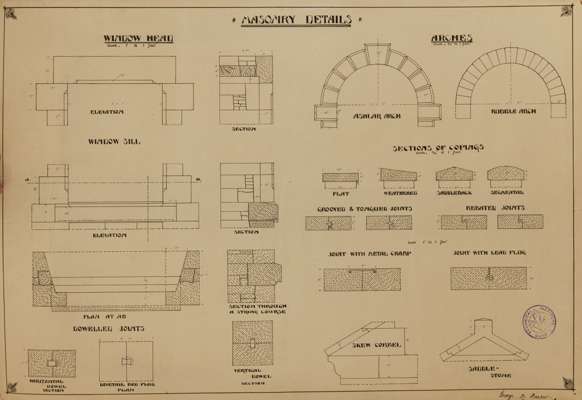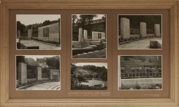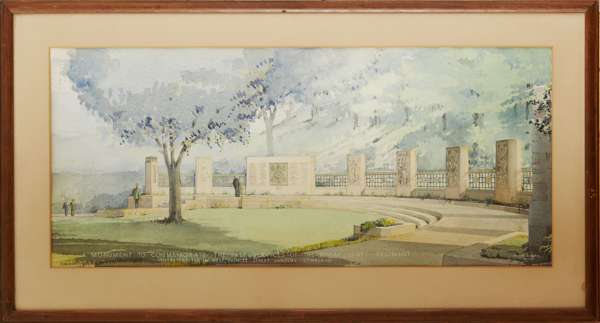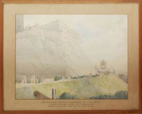 a FRAMED ARCHITECTURAL WATERCOLOUR, signed and dated R.J. NAISMITH PINX '50, 37cm x 84cm, : together with an ARCHITECTURAL WATERCOLOUR OF THE SCOTTISH NATIONAL MEMORIAL AS A VIA SACRE, inscribed F.C. MEARS ARCHITECT, 1919, 69.5cm x 53cm; and SIX PHOTOGRAPHS OF THE MONUMENT, framed as one, 90cm x 51cm: and a TRACE PLAN FOR A COMMEMORATIVE STONE at the Scottish National Memorial, 70cm x 128cm; also SIXTEEN TECHNICAL DRAWINGS, inscribed GEORGE D. DUNCAN (20)