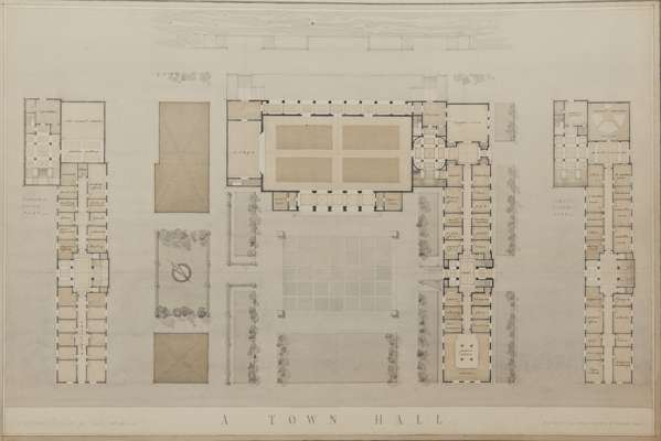 pencil and watercolour, comprising twenty-five examples, including one framed, 'A Monument to Lord Byron', a design for 'Leeds General Infirmary', designs for schools, offices and swimming baths (25)