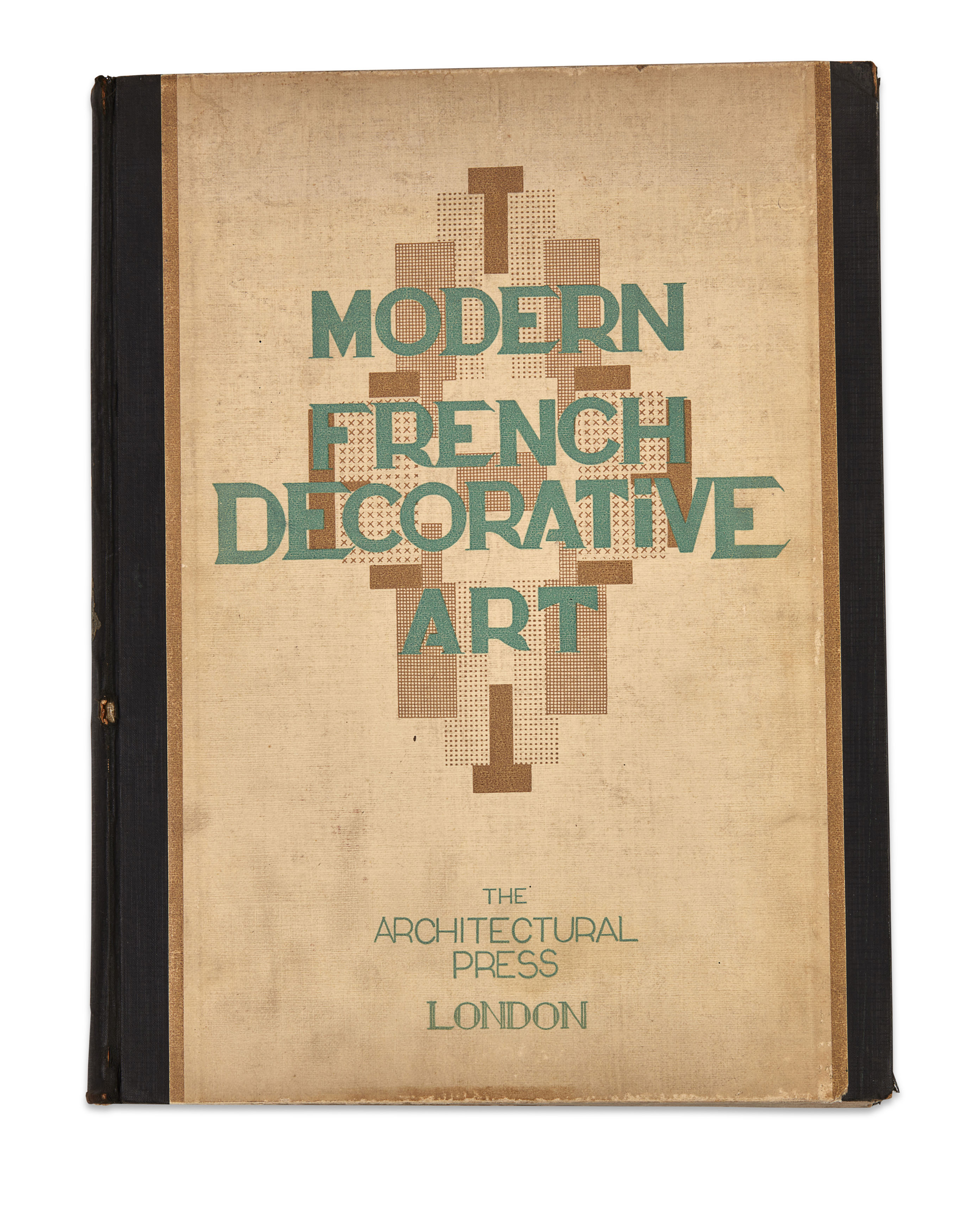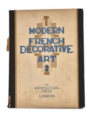 Paris: Éditions Albert Lévy, 1926. Folio. 50 colour plates including Chareau office-library; bedroom, living rooms and dining room, Ruhlmann; bedroom and boudoir, etc. 33cm x 25cm; also Modern French Decorative Art: A Collection of Examples etc. Volumes 1 and 2, introduction by Léon Deshairs, published Architectural Press/Albert Levy, 1926 (3)
