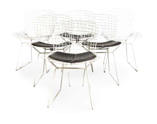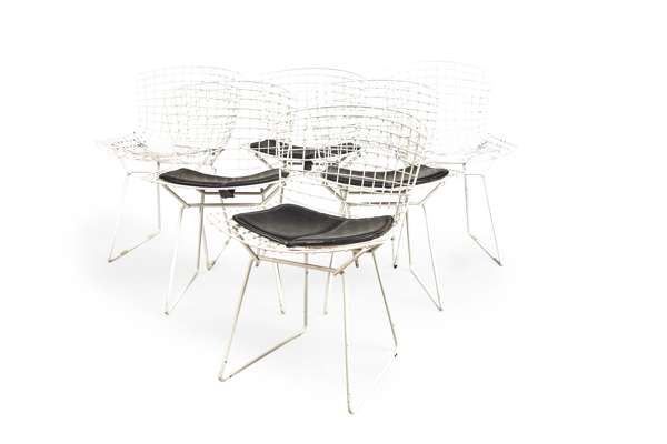 each with white coated metal in a lattice construction, four with black vinyl seat pads (6)