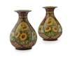 each decorated with panels of flowering yellow dahlias, faint impressed marks on one base DOULTON LAMBETH, with painted initials MSA/ 863 (2)
