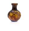 the ovoid yellow glass body with cylindrical neck and everted rim, overlaid with amethyst glass and acid etched with a design of flowering branches, cameo mark GALLÉ