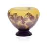 the ovoid yellow glass body with applied foot, overlaid with amethyst glass and acid etched with a design of aquilegia, cameo mark GALLÉ