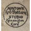 each printed and painted with stylised arabesques in black, ochre, turquoise and blue on a white ground, printed mark MINTONS ART POTTERY STUDIO/ KENSINGTON GORE, and with impressed maker's marks (2)