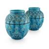 each of ovoid form, decorated with stylised borders, flowers and leaves, in a turquoise and cobalt glaze, impressed maker's marks and number 568, one vase incised EB (2)