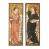each painted with a Pre-Raphaelite maiden, one in a flower garden, the other in an orchard, framed, impressed factory marks (2)