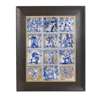 printed blue on white highlighted with gilt and mounted within an oak frame