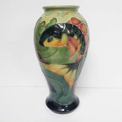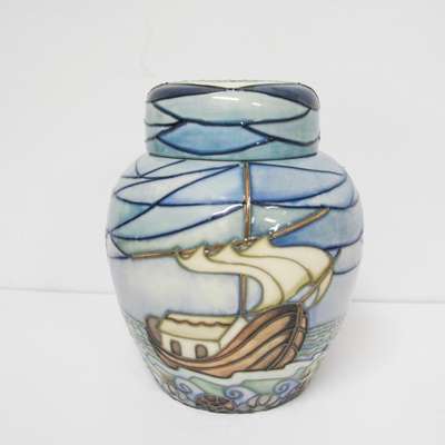 of baluster form, designed by Sally Tuffin, painted and impressed maker's marks WM, 30.5cm high; and a MOORCROFT 'WINDS OF CHANGE' PATTERN GINGER JAR & COVER, CIRCA 1999, painted and impressed maker's marks WM, 16cm high (2)