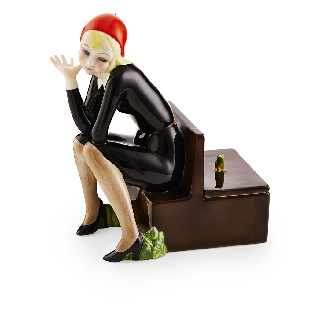 'NELLA' EARTHENWARE FIGURAL BOX AND COVER, CIRCA 1933