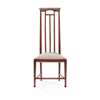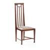the tall slender back filled with vertical and horizontal uprights above a drop in seat on square tapered legs linked by stretchers