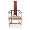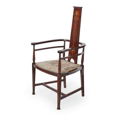 MAHOGANY AND INLAID CAQUETEUSE ARMCHAIR, CIRCA 1900